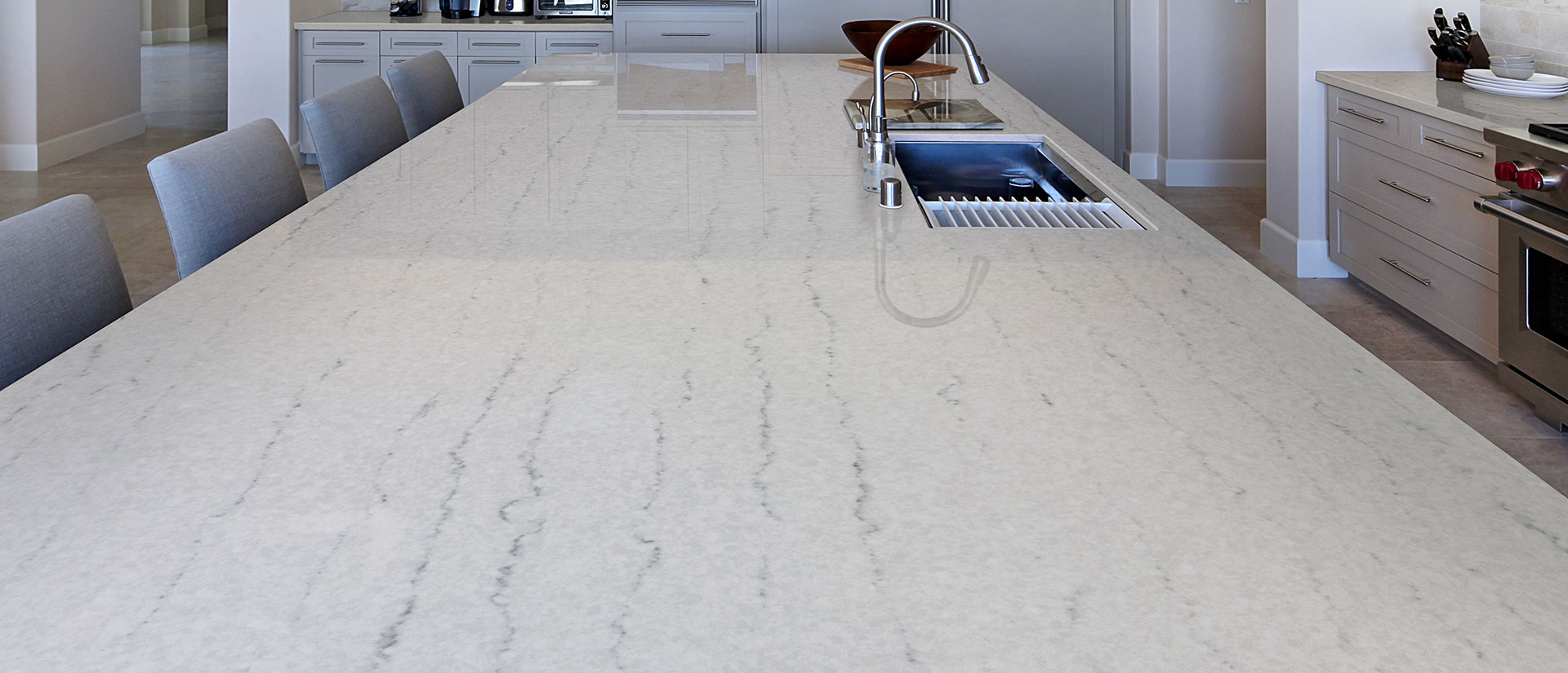 Echoing the look of Brazilian Macaubus quartzite, waves of delicate dove gray veins dance across an ocean of soft whites for elegant simplicity. Ideal for white quartz countertops, backsplashes, and wall accent projects in both commercial and residential properties, the understated beauty of Macaubus Wave complements a plethora of color schemes and design styles. Available in 2 cm and 3 c slabs and prefabricated options for design and installation flexibility.